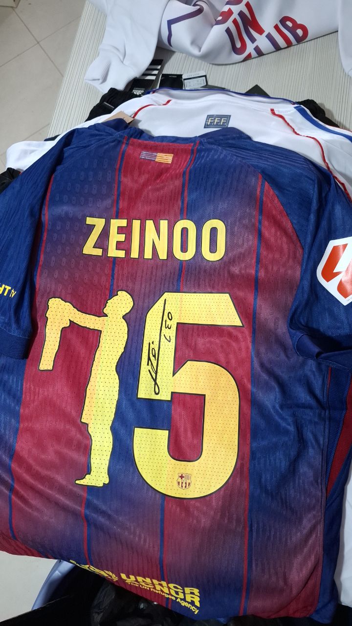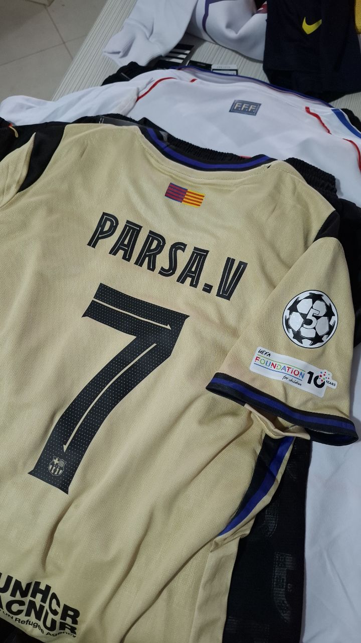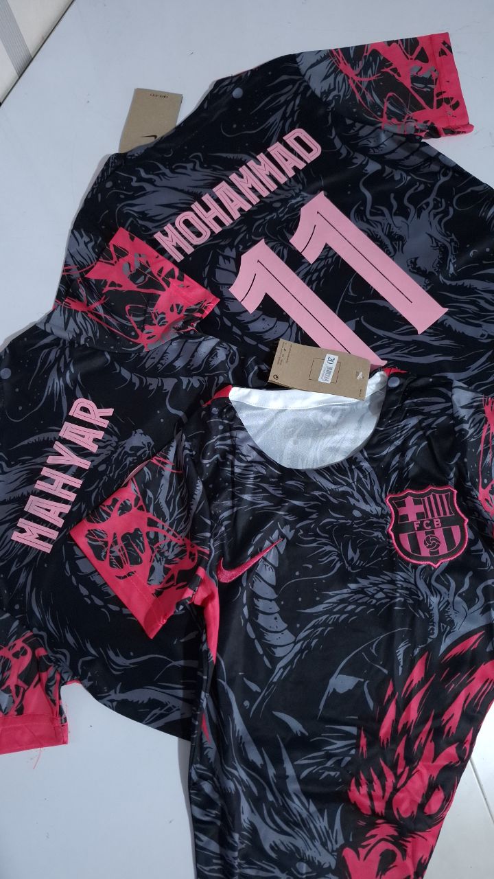لباس دوم بارسلونا با چاپ ارجینال به همراه طرح و امضای مسی فونت لالیگا